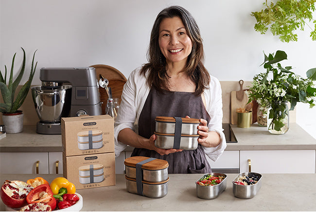 Bei so vielen Bentos auf dem Markt wollten wir etwas wirklich Einzigartiges schaffen - unsere Bento-Box spiegelt authentische japanische Merkmale wider und verkörpert gleichzeitig die Black+Blum-Designästhetik. Sie ist eine der ersten vollständig auslaufsicheren Stahl-Bento-Boxen auf dem Markt und umfasst zwei identische Boxen, die sich sauber aufeinander stapeln lassen. Unter dem antibakteriellen Bambusdeckel verbirgt sich eine Stahlgabel, und jede Box hat ein großzügiges Fassungsvermögen von 500 ml, kann also einzeln oder als Paar verwendet werden. Die Zusammenarbeit mit Sara Kiyo Popowa war für unsere Forschung unglaublich nützlich. Sie hat ihr umfangreiches Wissen über Bento und ihre über 20-jährige Erfahrung mit Black+Blum-Design in unsere Bento-Box einfließen lassen.