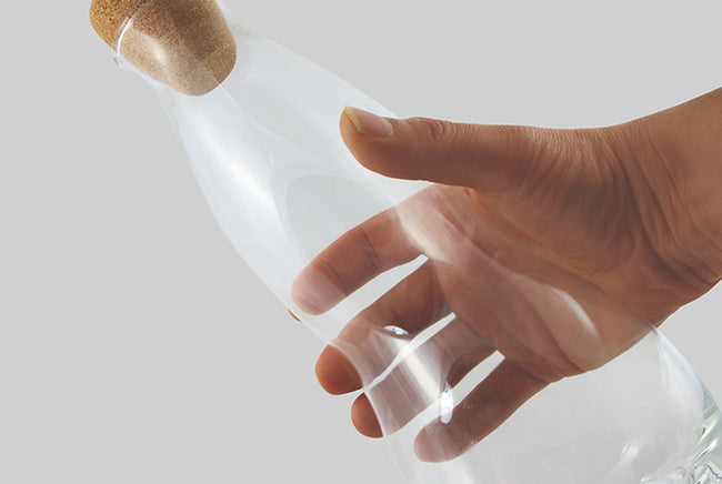 Eine schöne Kombination von Materialien. Das Borosilikatglas wird gekonnt mundgeblasen und der Naturkorken stammt aus nachhaltiger Produktion in Portugal. Die Silikonhülle auf dem Korken erleichtert die Reinigung und verlängert die Lebensdauer des Stopfens.