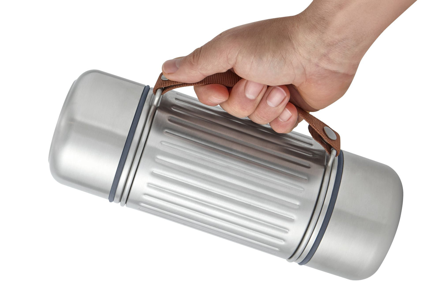 Ein hochwertiger Nylongriff erleichtert das Tragen unterwegs oder beim Ausgießen und kann zum Waschen abgenommen werden.