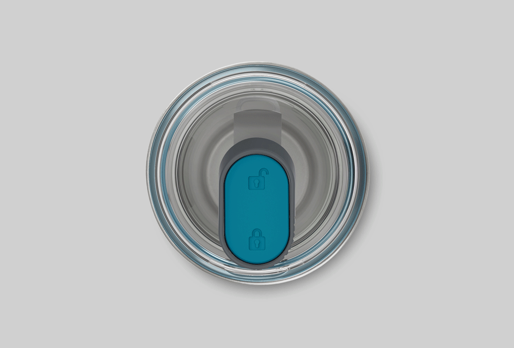 Unser Deckel lässt sich durch Drehen des Pucks leicht öffnen und kann verriegelt werden, um sicherzustellen, dass er sich in der Tasche nicht öffnet. Er gibt ein beruhigendes „Klick“ von sich, wenn Sie ihn öffnen und schließen.