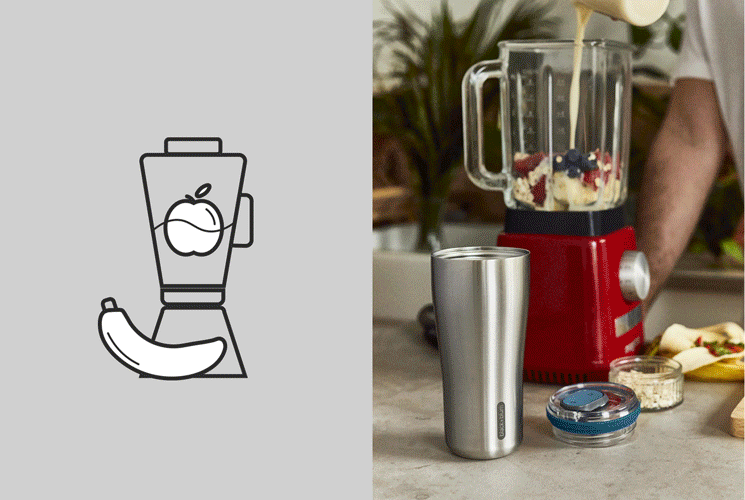 Füllen Sie den Becher mit heißem Wasser und fügen Sie einen Teelöffel Natron hinzu (bei dieser Reinigungsmethode NICHT den Deckel aufsetzen). Für beste Ergebnisse über Nacht einweichen. Vor der Wiederverwendung immer ausspülen. Alternativ können Sie auch eine Lösung aus Essig und Wasser verwenden.