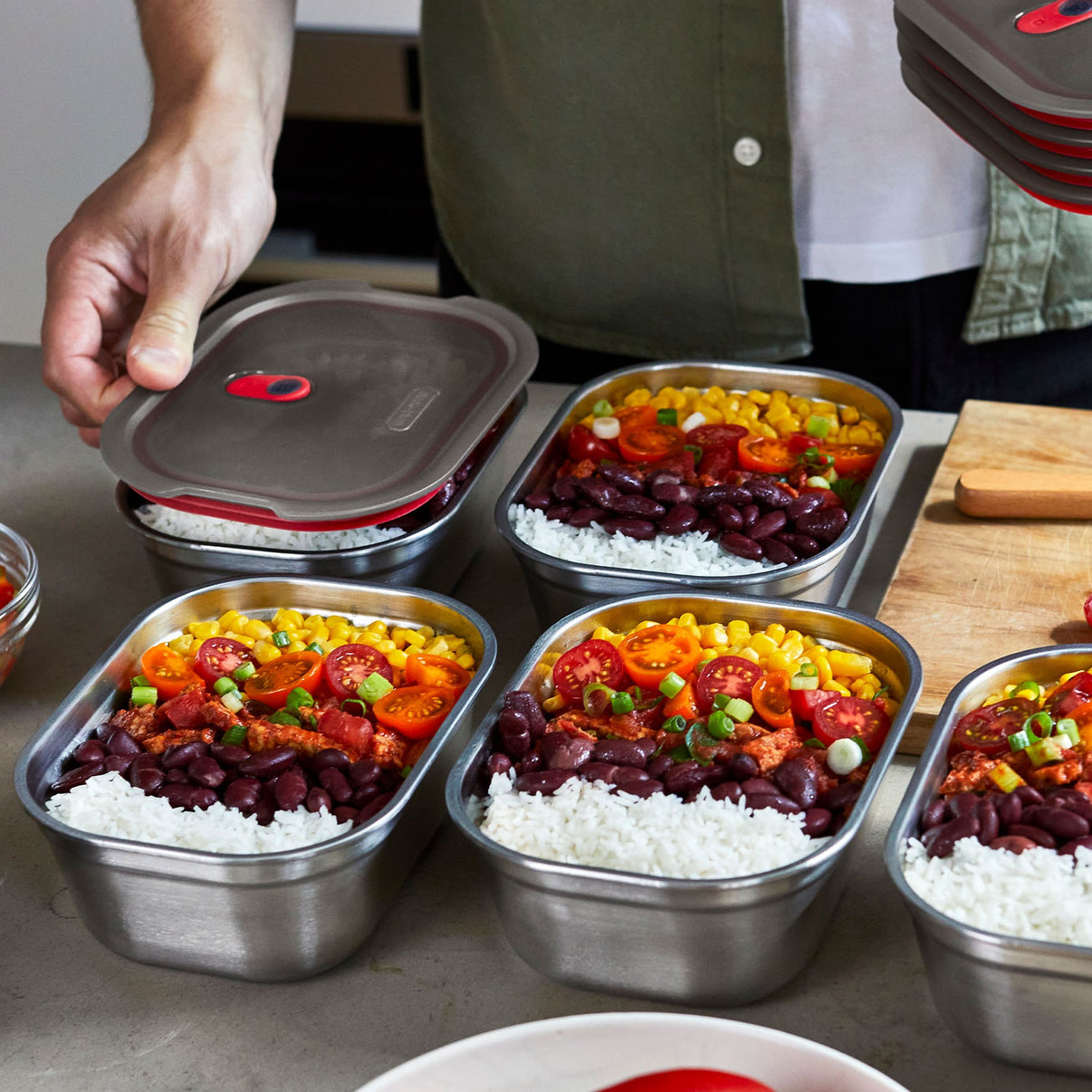 Diese Sets wurden speziell für die Zubereitung von Mahlzeiten entwickelt. Das Kochen auf Vorrat hilft Ihnen, gesund zu bleiben, Lebensmittelverschwendung zu vermeiden und Geld zu sparen.