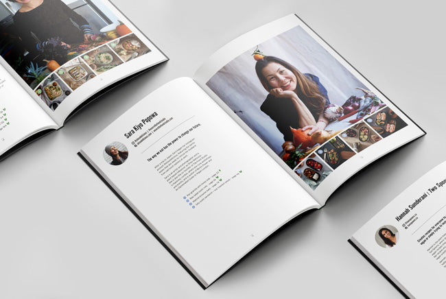 Wir haben mit vier tollen Food-Influencern zusammengearbeitet, die freundlicherweise jeweils 4 Rezepte für unterwegs für dieses Buch gespendet haben. Dazu gehören die Lebensmittel-, Design- und Nachhaltigkeitsexpertin Christine Wong von Conscious Cooking, der Ernährungsberater Ryan Carter von Live Vitae, die Künstlerin, Autorin, Fotografin und Köchin Sara Kiyo Popowa von Shisodelicious und die vegane Food-Bloggerin Hannah Sunderani von Two Spoons.