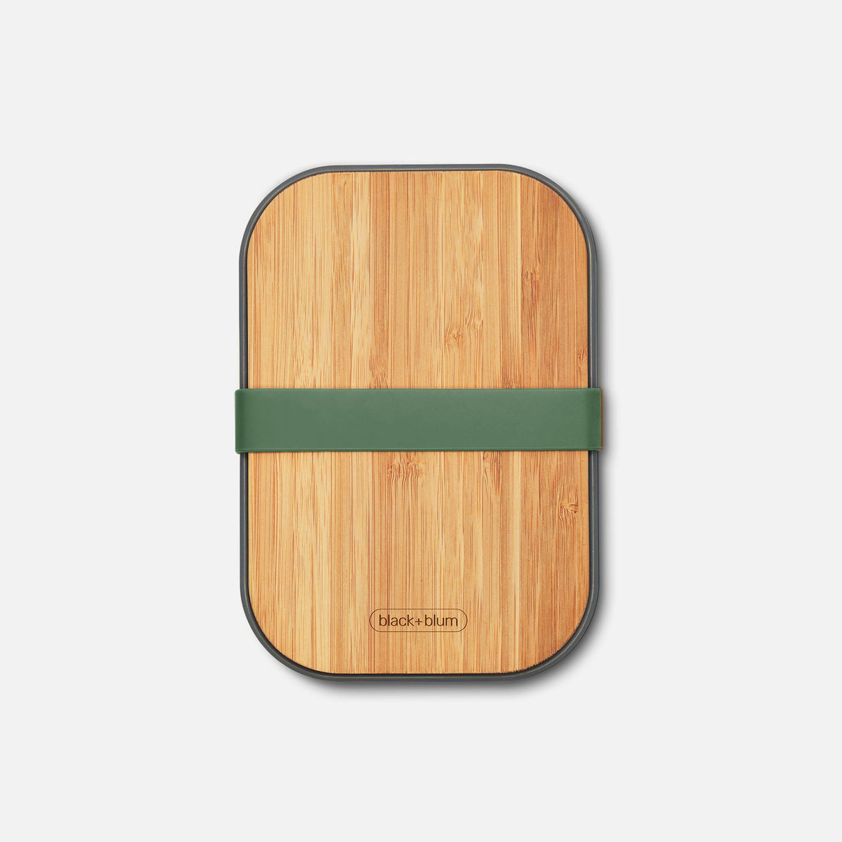 Der Deckel aus Bambus, der nicht nur aus nachhaltigem Anbau stammt und von Natur aus antibakteriell ist, dient auch als Schneidebrett - ideal für die Zubereitung von Speisen unterwegs und die Präsentation beim Picknick.